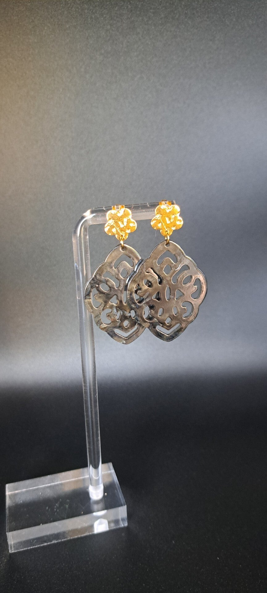 Ces boucles d'oreilles dorées en résine baroque losange noir vous sublimera