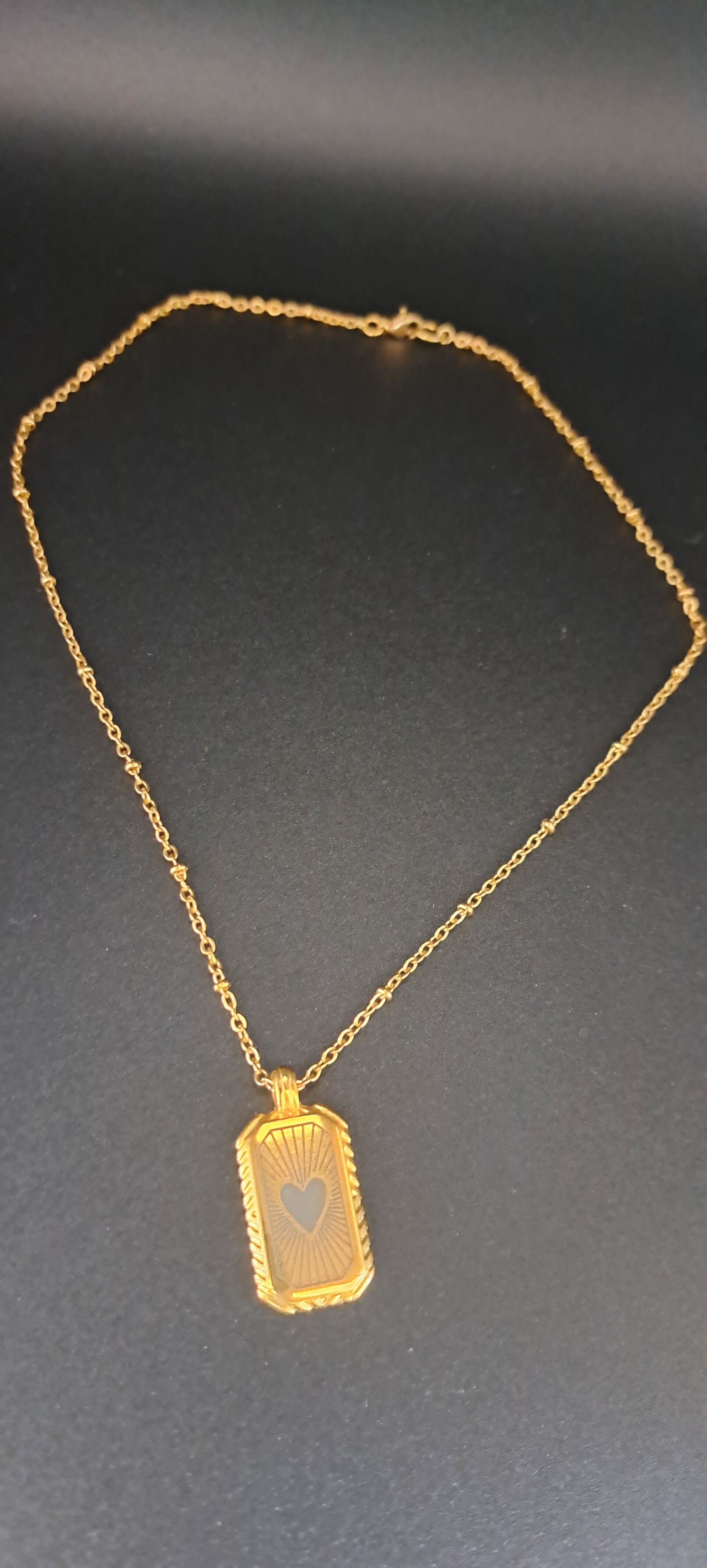 collier en acier inoxydable chaine perlée avec sa breloque en acier inoxydable coeur (42cm)