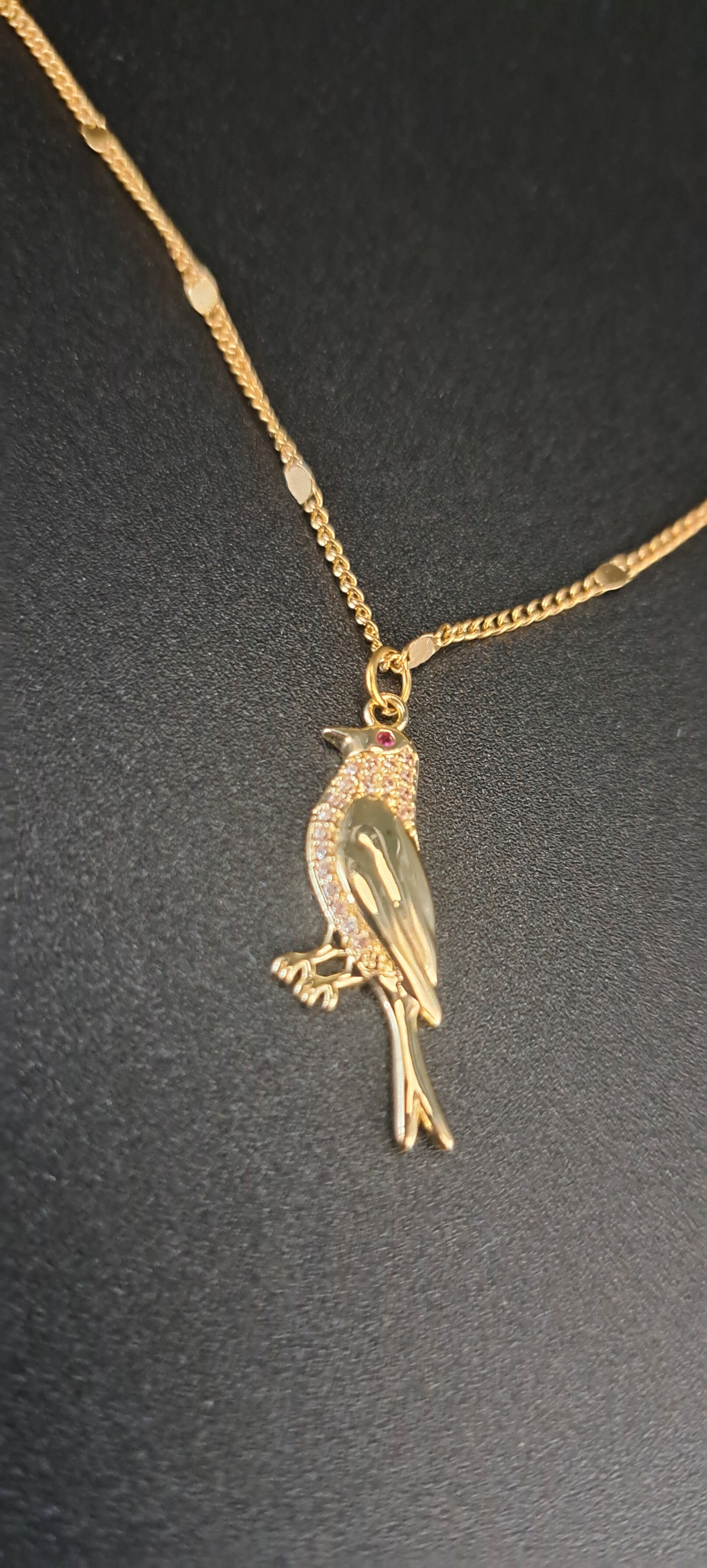 collier doré en acier inoxydable avec sa breloque oiseau en pierre zirconium (43cm)