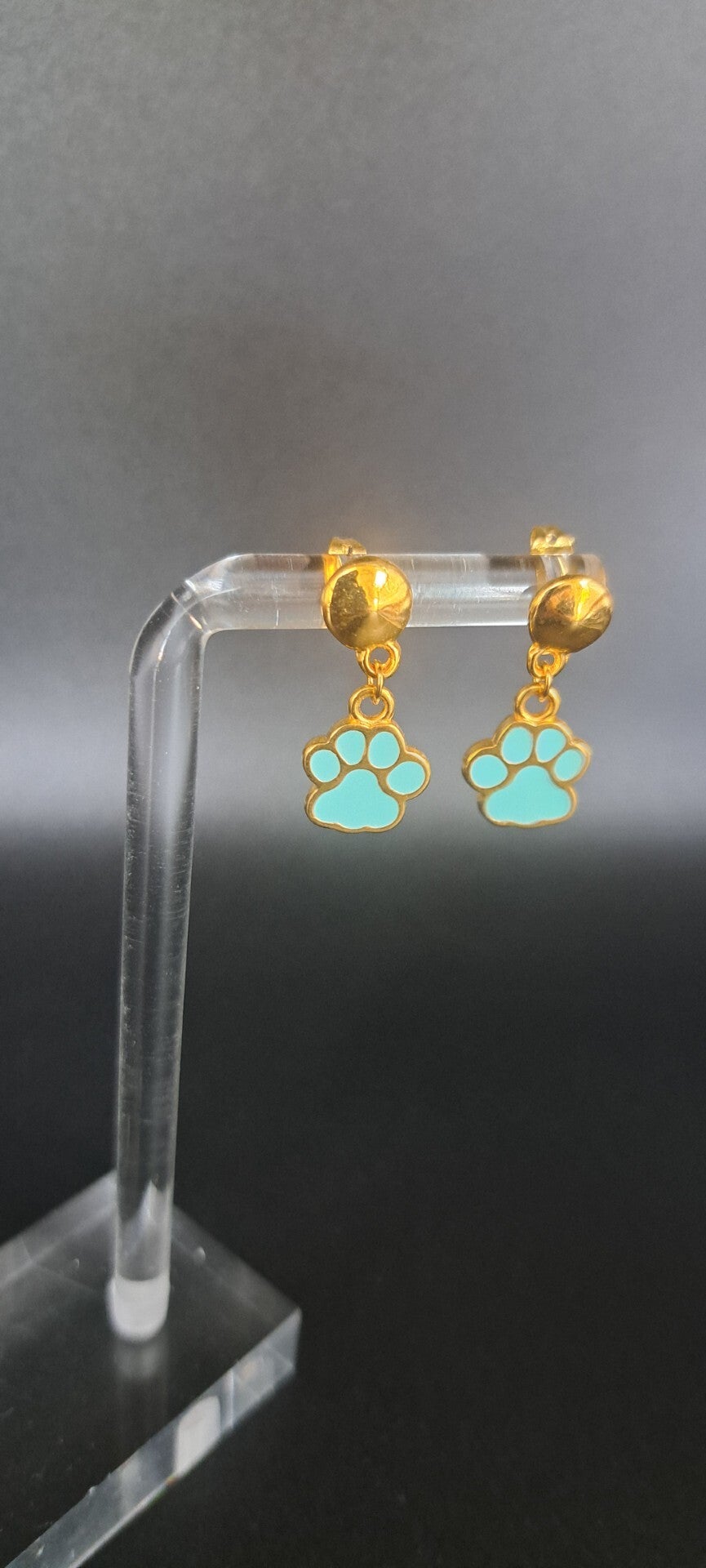 Boucle d'oreille dorée patte de chien vert menthe à l'eau