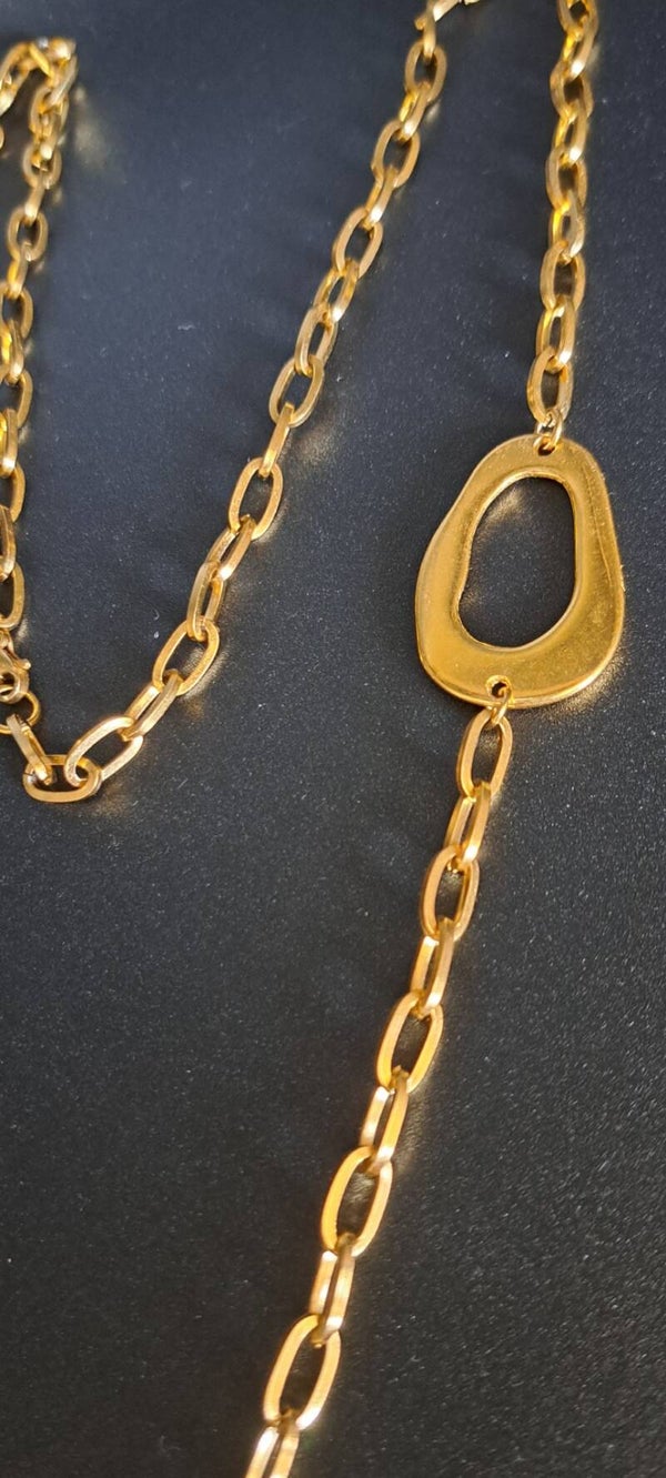 collier long doré en acier inoxydable avec 2 separateurs ovale (85 cm)