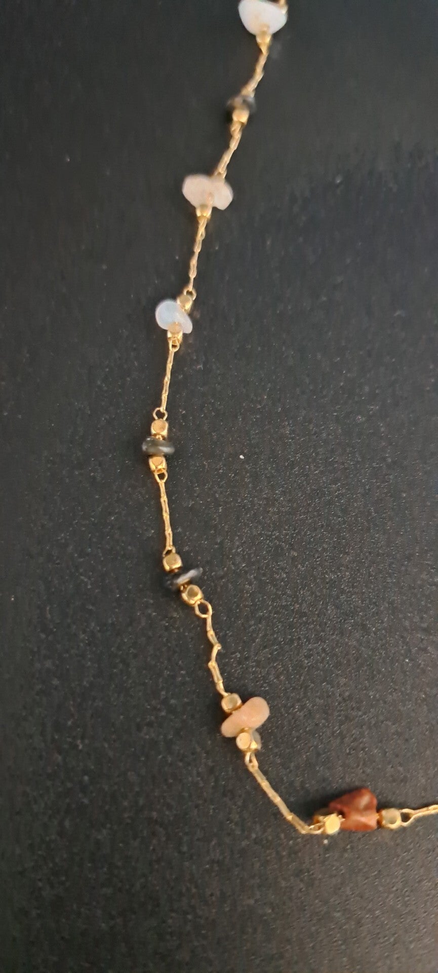 collier en fine chaine dorée en acier inoxydable avec ses pierres naturelles chips (42 cm)