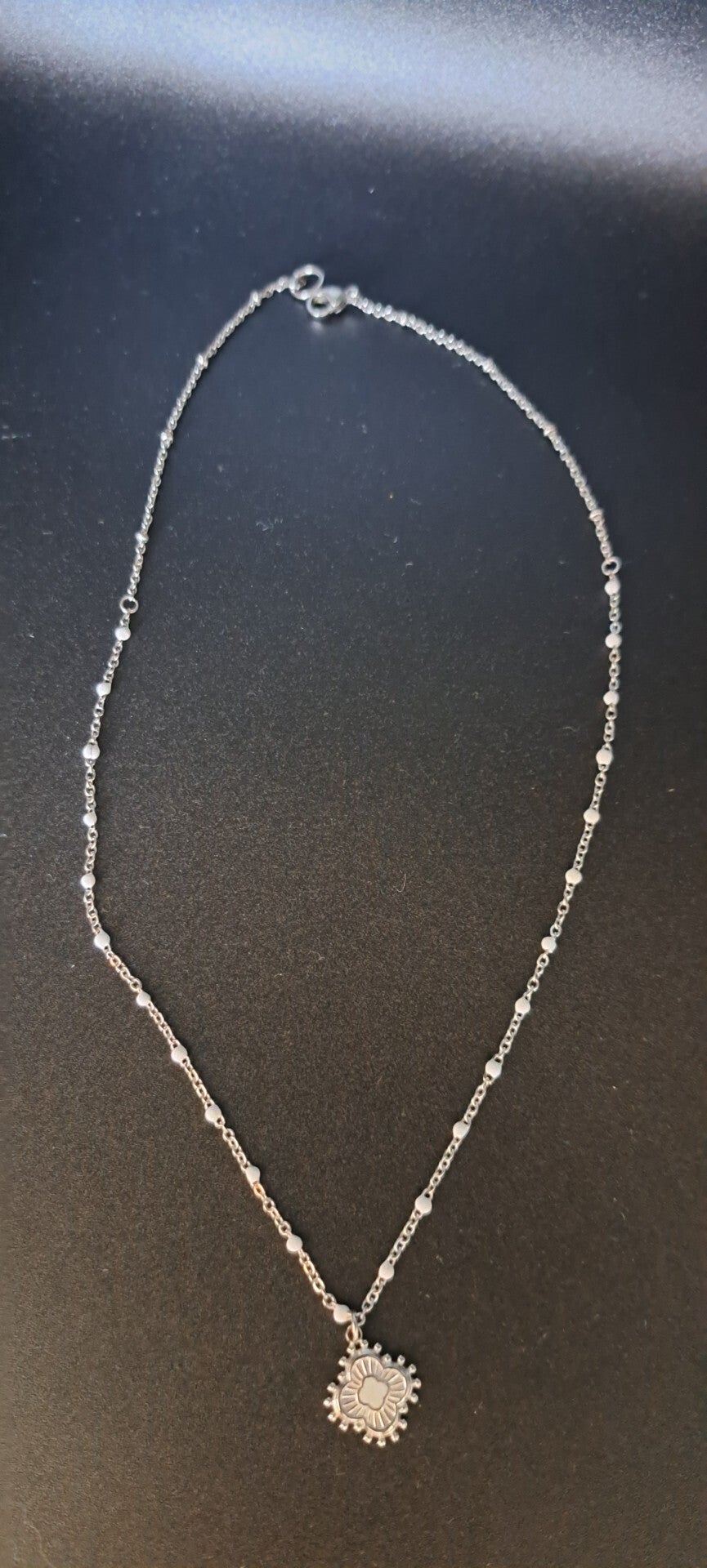 collier argenté en acier inoxydable, chaine perlée et chaine perlée blanche avec sa breloque mandala (41 cm)