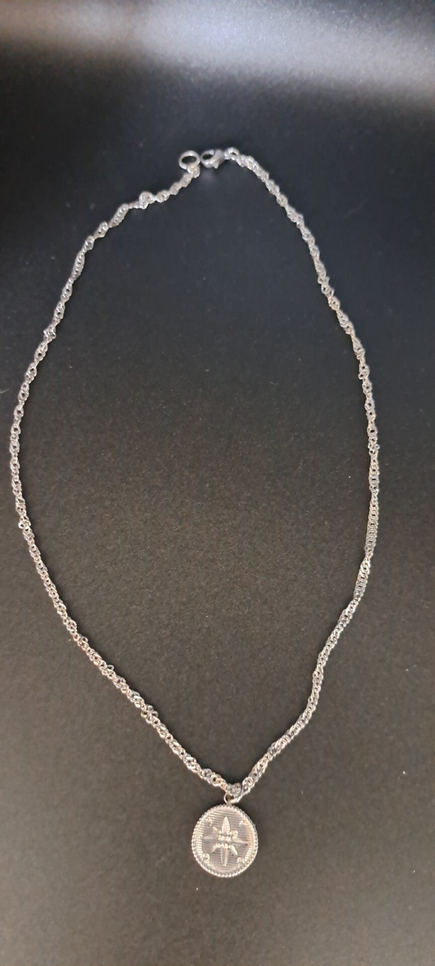 collier argenté en acier inoxydable avec chaine spirale et sa breloque rose des vents (44 cm)