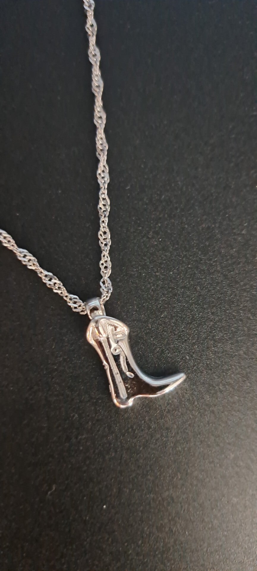 collier argenté en acier inoxydable, chaine torsadée avec sa breloque santiag (42 cm)