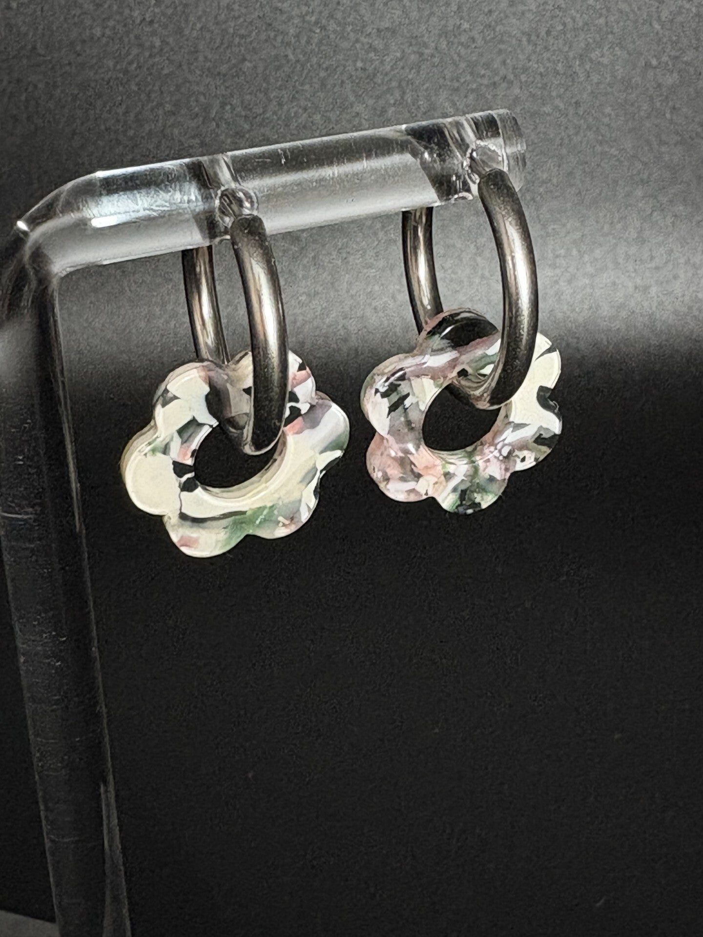 boucle d'oreille argentée fleur multicolore