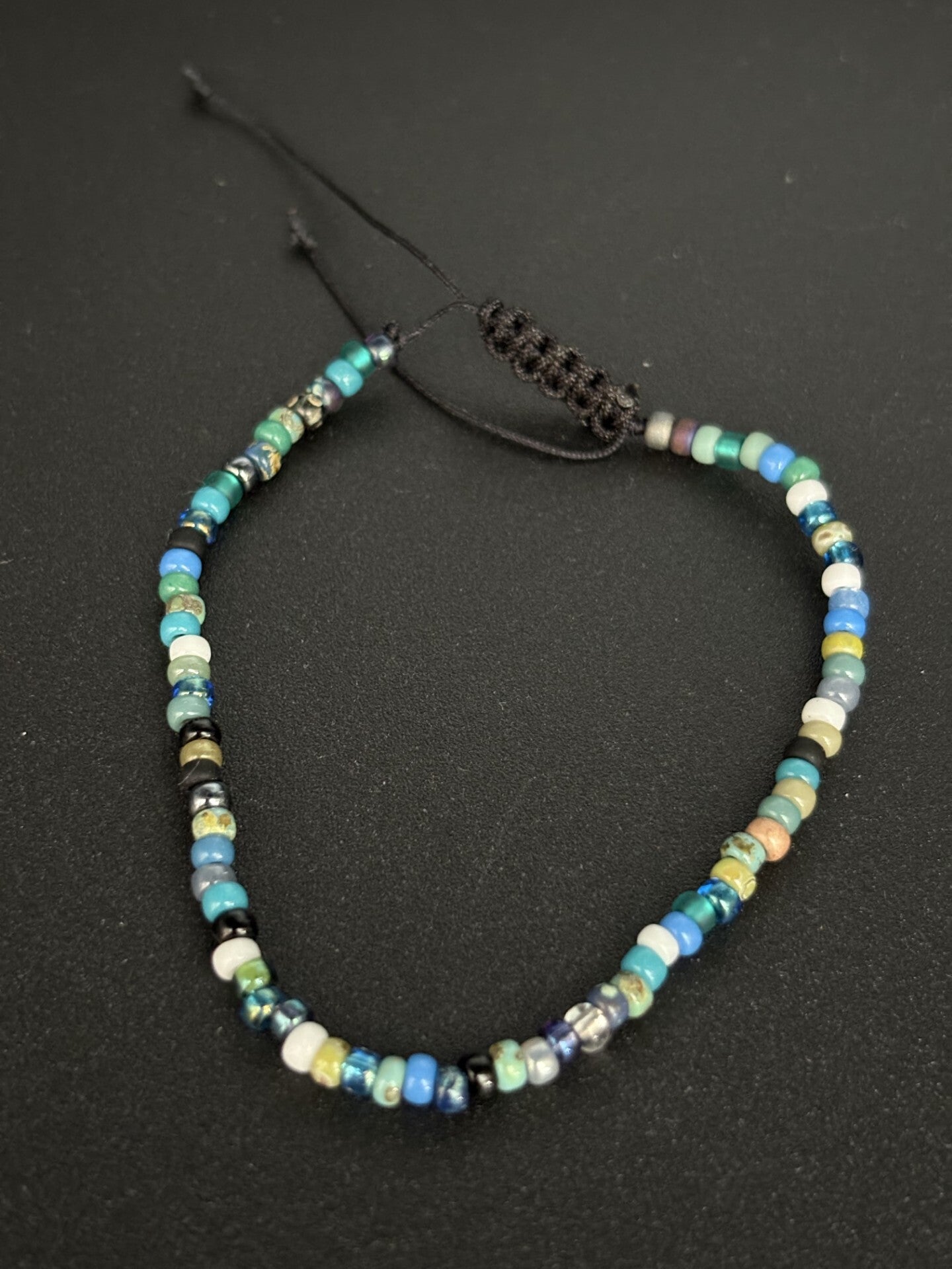 Bracelet cordon noeud coulissant de perle miyuki mélange de bleu