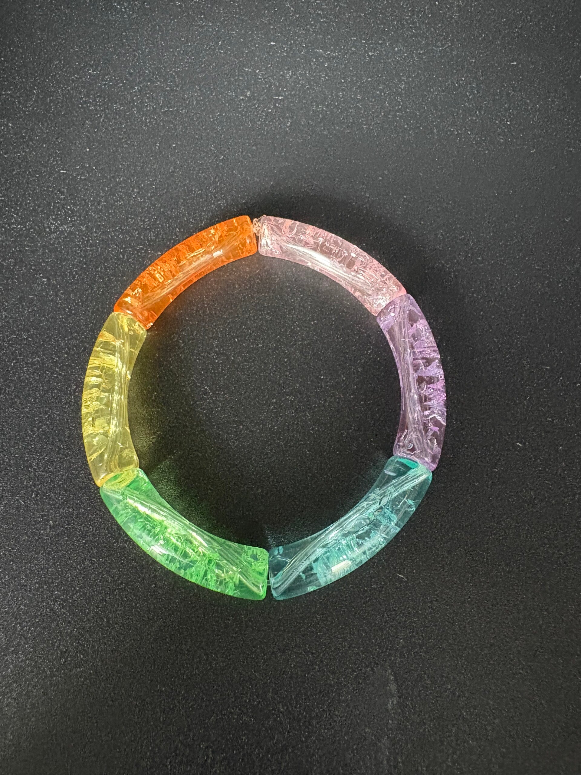 bracelet tube acrylique orange, jaune, vert, bleu, mauve et rose transparent