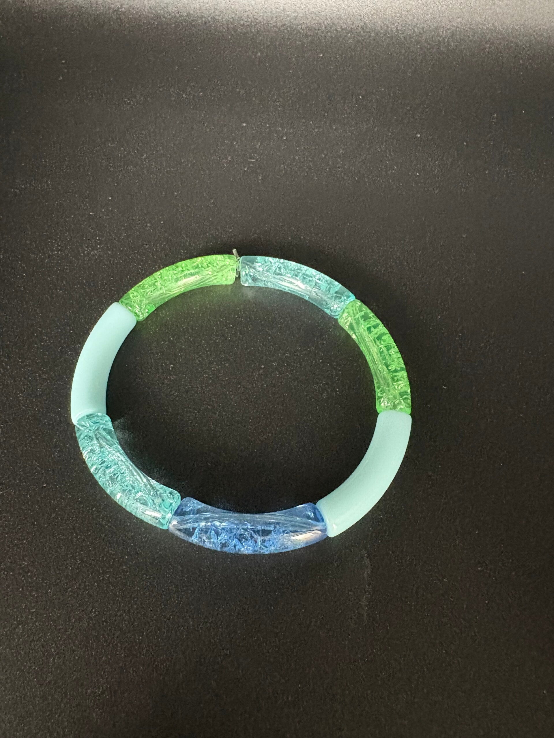 bracelet tube acrylique bleu ciel, vert, bleu foncé et clair transparent